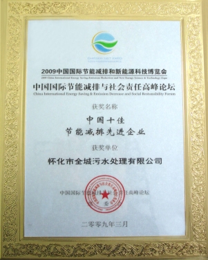 • 2009年3月在胡錦濤、溫家寶等中央領(lǐng)導(dǎo)出席的中國國際節(jié)能減排與新能源科技博覽會和高峰論壇上評為“中國十佳節(jié)能減排先進企業(yè)”。